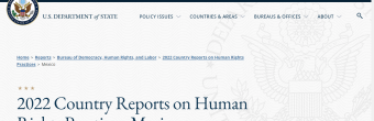 U.S. Department of State 2022 Human Rights Practices Report on Mexico.